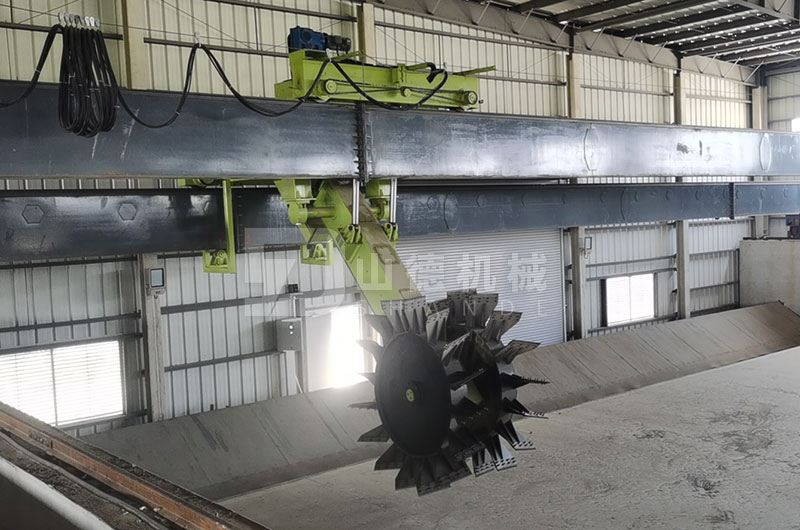 適用場景:適合發(fā)酵場地小、發(fā)酵槽深的場景,每日處理量30噸以上,年產(chǎn)1~2萬噸有機肥。